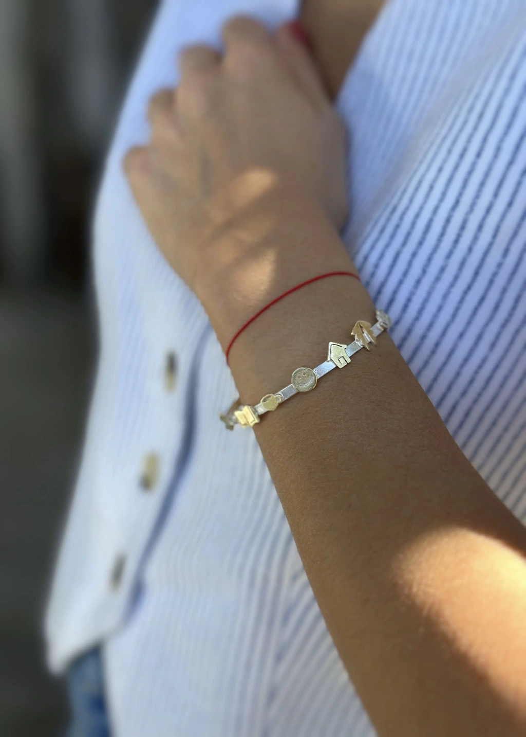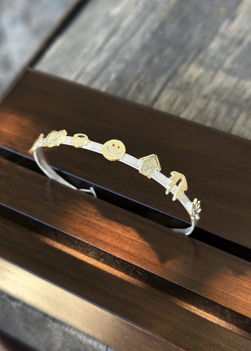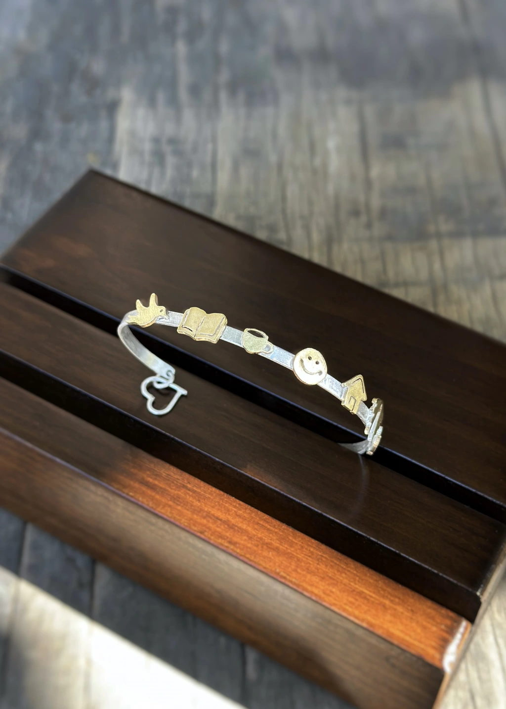 Sarı figürler pirinçtir, kelepçe kısmı gümüştür.