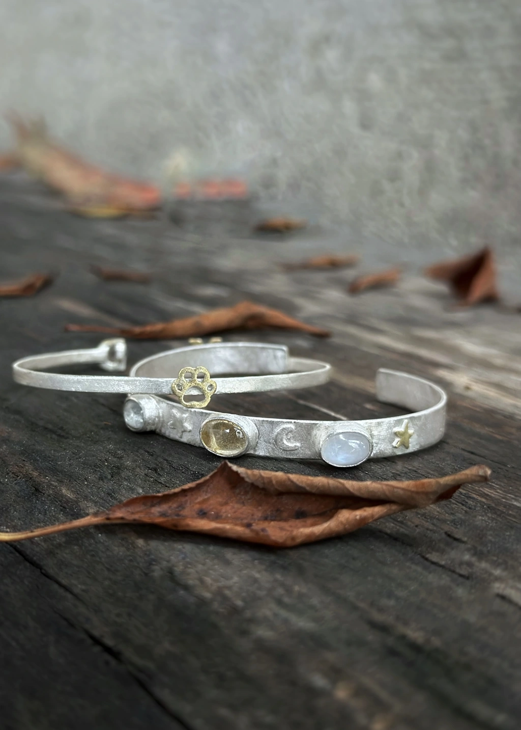 1 adet sarı sitrin taş, 1 adet şeffaf kuvars ve 1 adet aytaşı kullanılmıştır.