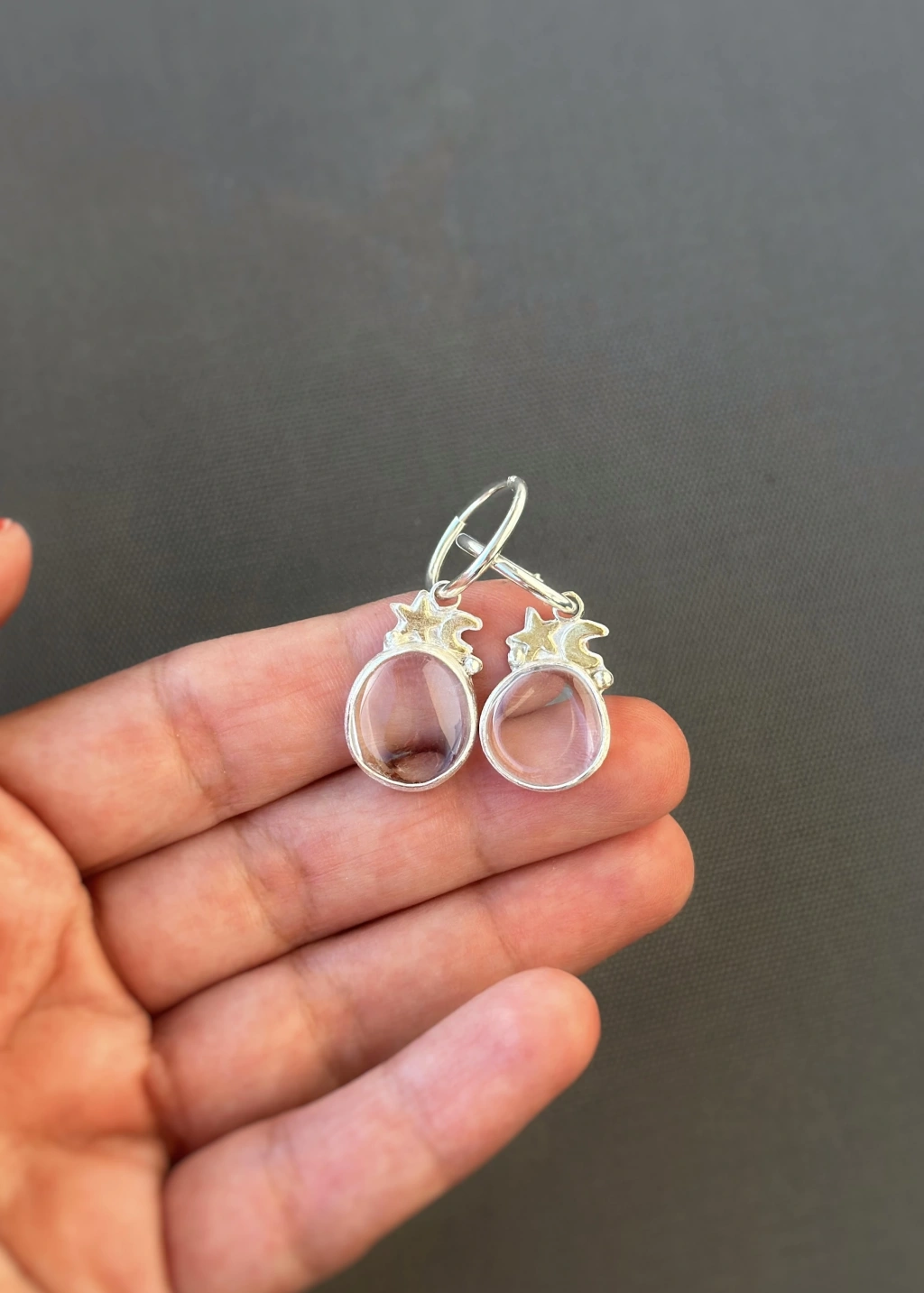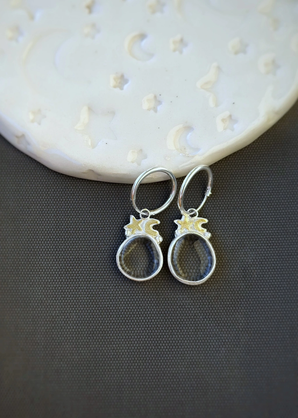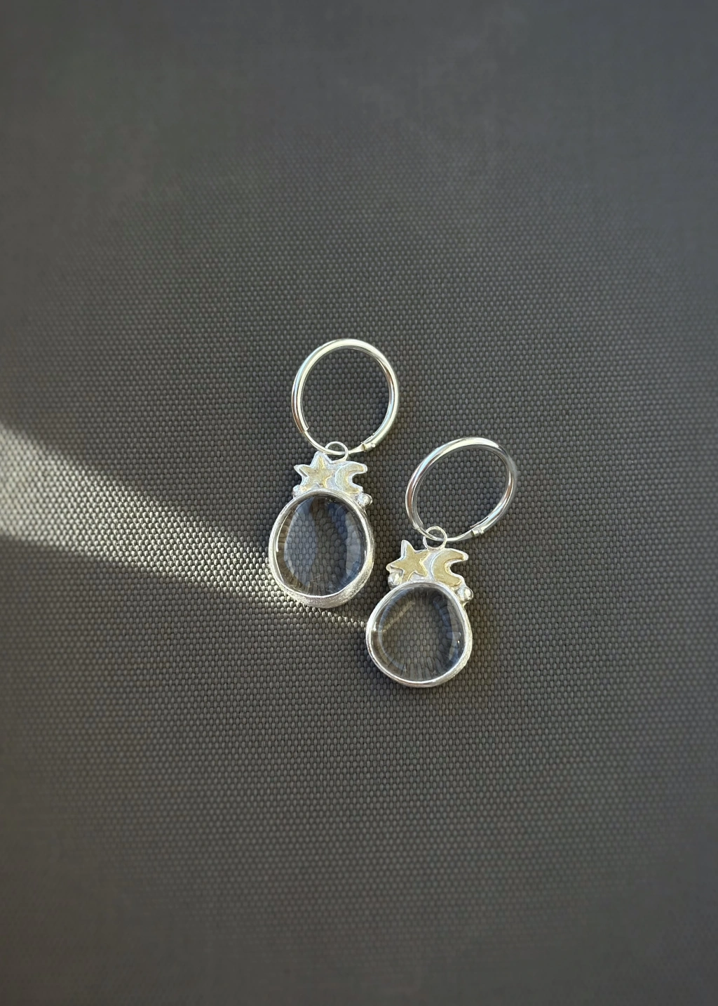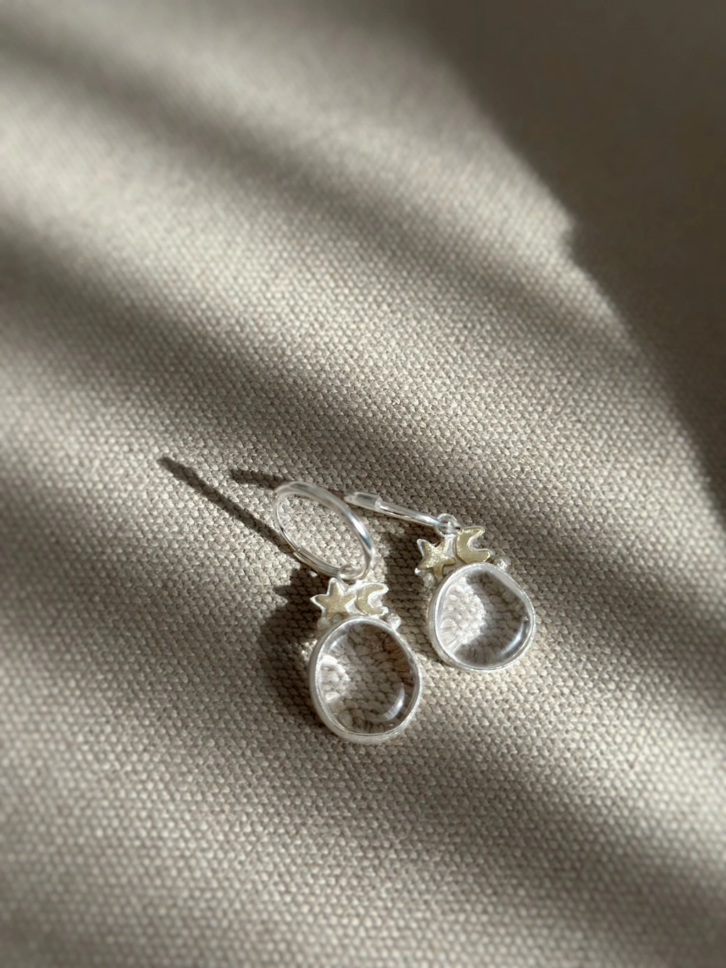 Sarı ay ve yıldızlar pirinçtir, halkalar hazır halka küpedir.