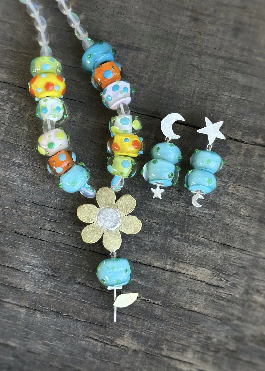 Dizi kısmı el yapımı Muranolar ve kuvars taşlardandır.