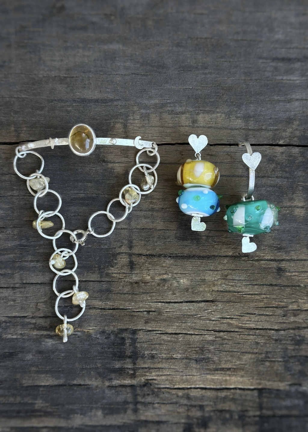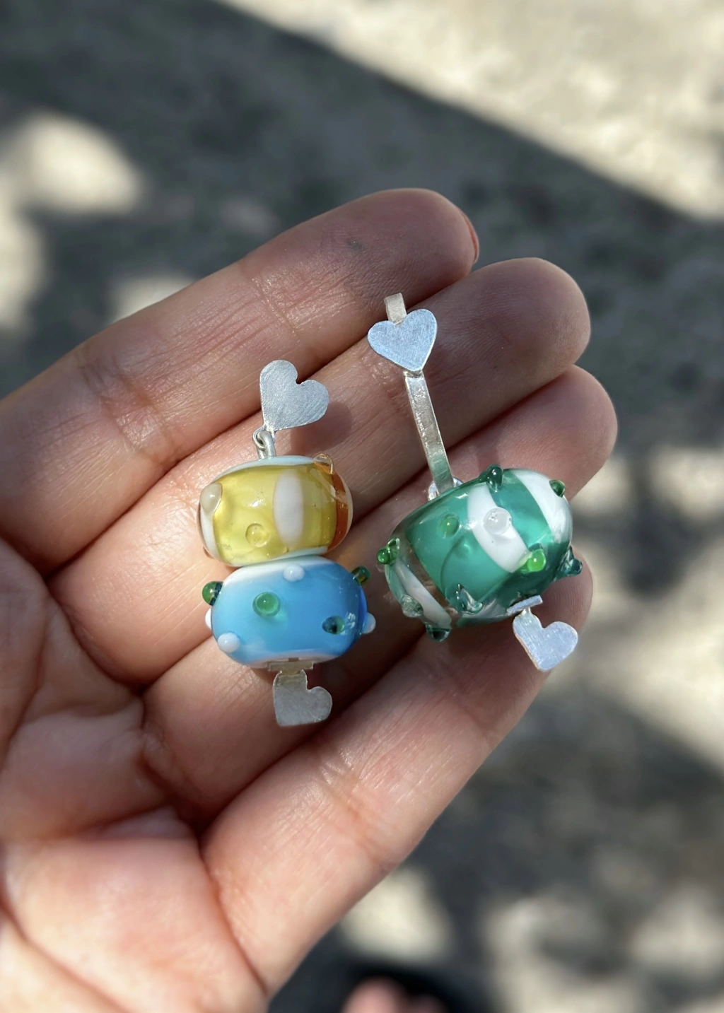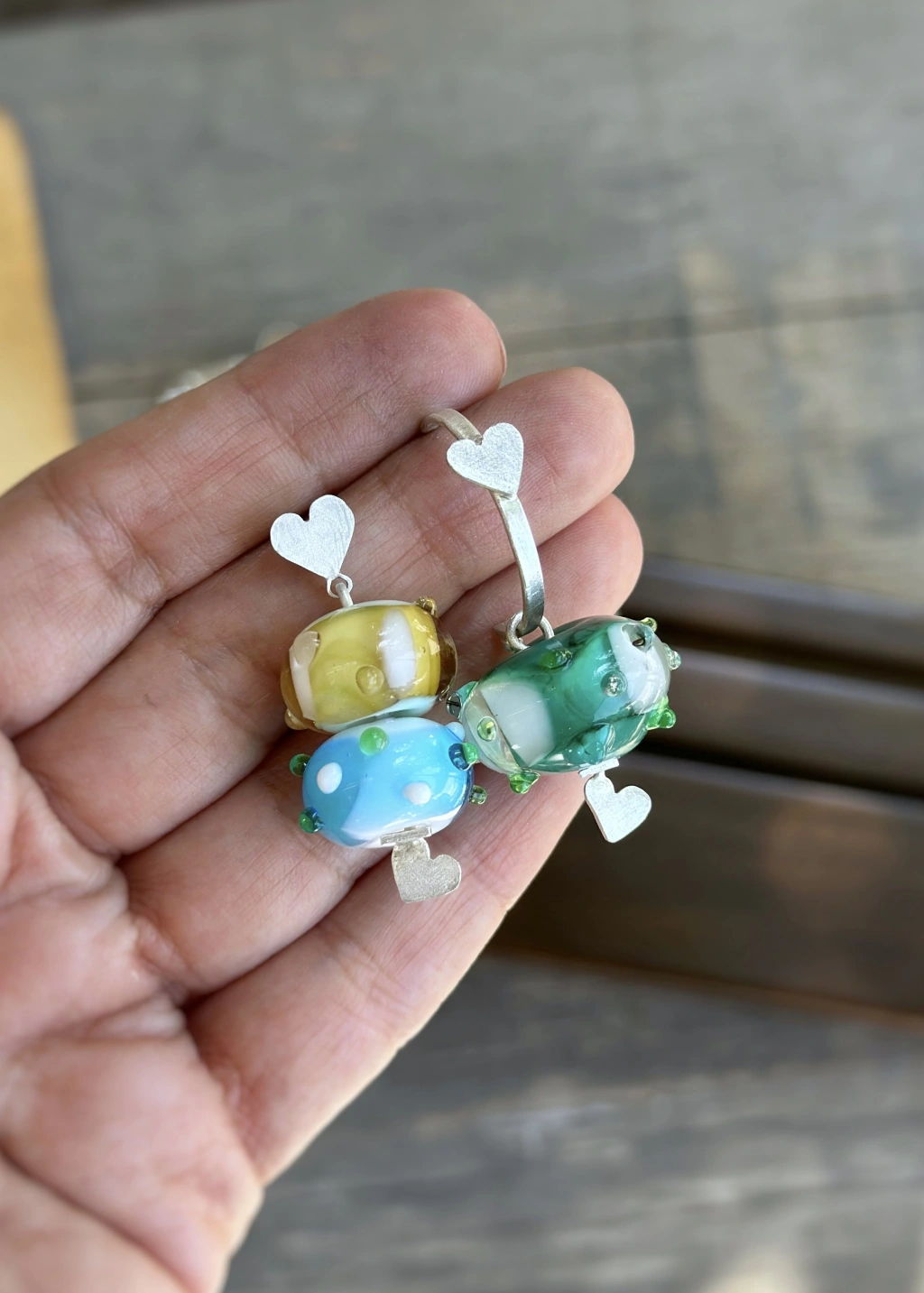 3 adet renkli murano ve gümüşten tamamen el yapımıdır.